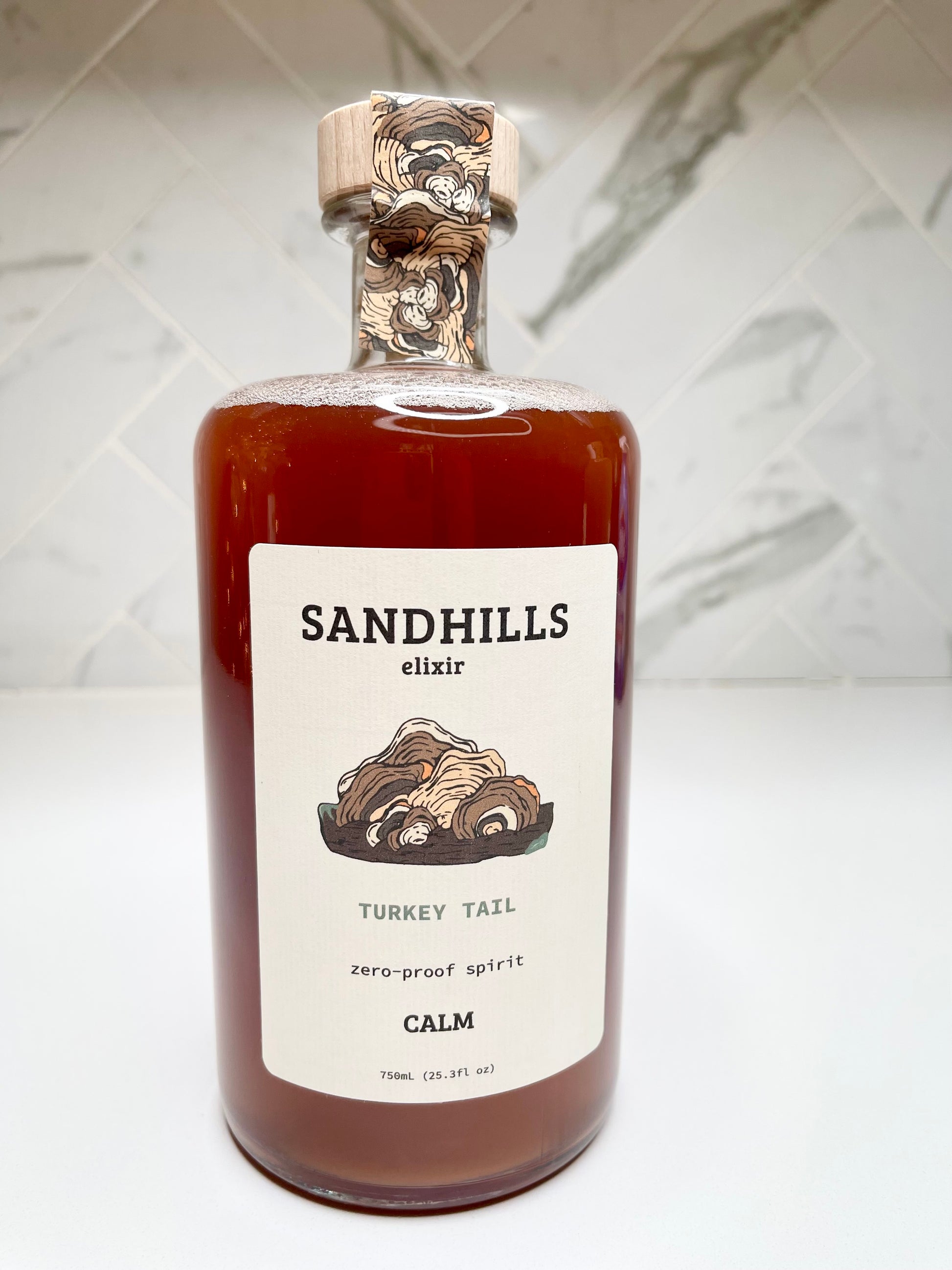{"id":7529301049525,"title":"Turkey Tail \/\/ Calm","handle":"turkey-tail-calm","description":"Need a break? Turkey Tail \/\/ Calm zero-proof spirit uses the calming power of Turkey Tail mushrooms to bring a calmness and peace-of-mind so you can be your best self. Mixed with tart cherries, we celebrate the most complex zero-proof spirit and take a deep breath. . .of serenity.","published_at":"2024-01-03T16:25:13-06:00","created_at":"2023-10-26T20:27:58-05:00","vendor":"Sandhills Elixir","type":"","tags":[],"price":2900,"price_min":2900,"price_max":2900,"available":true,"price_varies":false,"compare_at_price":null,"compare_at_price_min":0,"compare_at_price_max":0,"compare_at_price_varies":false,"variants":[{"id":43217426579637,"title":"Default Title","option1":"Default Title","option2":null,"option3":null,"sku":"TT-1","requires_shipping":true,"taxable":false,"featured_image":null,"available":true,"name":"Turkey Tail \/\/ Calm","public_title":null,"options":["Default Title"],"price":2900,"weight":1397,"compare_at_price":null,"inventory_management":"shopify","barcode":"860008014276","requires_selling_plan":false,"selling_plan_allocations":[]}],"images":["\/\/sandhillselixir.com\/cdn\/shop\/files\/SandhillsElixirCalmBottle.jpg?v=1715099258","\/\/sandhillselixir.com\/cdn\/shop\/files\/DE5E4EB9-2A12-4F9C-84EB-8CF5613099B4.jpg?v=1715099258"],"featured_image":"\/\/sandhillselixir.com\/cdn\/shop\/files\/SandhillsElixirCalmBottle.jpg?v=1715099258","options":["Title"],"media":[{"alt":null,"id":29972987674805,"position":1,"preview_image":{"aspect_ratio":0.75,"height":5712,"width":4284,"src":"\/\/sandhillselixir.com\/cdn\/shop\/files\/SandhillsElixirCalmBottle.jpg?v=1715099258"},"aspect_ratio":0.75,"height":5712,"media_type":"image","src":"\/\/sandhillselixir.com\/cdn\/shop\/files\/SandhillsElixirCalmBottle.jpg?v=1715099258","width":4284},{"alt":null,"id":28955588034741,"position":2,"preview_image":{"aspect_ratio":0.75,"height":4032,"width":3024,"src":"\/\/sandhillselixir.com\/cdn\/shop\/files\/DE5E4EB9-2A12-4F9C-84EB-8CF5613099B4.jpg?v=1715099258"},"aspect_ratio":0.75,"height":4032,"media_type":"image","src":"\/\/sandhillselixir.com\/cdn\/shop\/files\/DE5E4EB9-2A12-4F9C-84EB-8CF5613099B4.jpg?v=1715099258","width":3024}],"requires_selling_plan":false,"selling_plan_groups":[],"content":"Need a break? Turkey Tail \/\/ Calm zero-proof spirit uses the calming power of Turkey Tail mushrooms to bring a calmness and peace-of-mind so you can be your best self. Mixed with tart cherries, we celebrate the most complex zero-proof spirit and take a deep breath. . .of serenity."}